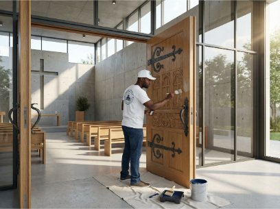 Precision painting for church doors to refresh your facility and improve its overall appearance.